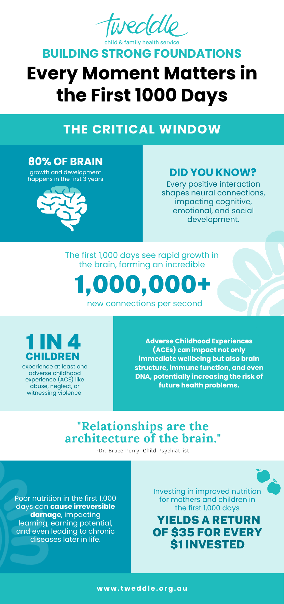 The first 1000 days, spanning from conception to a child’s second birthday, might seem like a fleeting blip. But for their developing brain, it’s a transformative window, a period of exponential growth laying the foundations for future mental and emotional health. At Tweddle, we delve into this pivotal stage, where brain development and relationships intricately intertwine, sculpting the very essence of wellbeing.